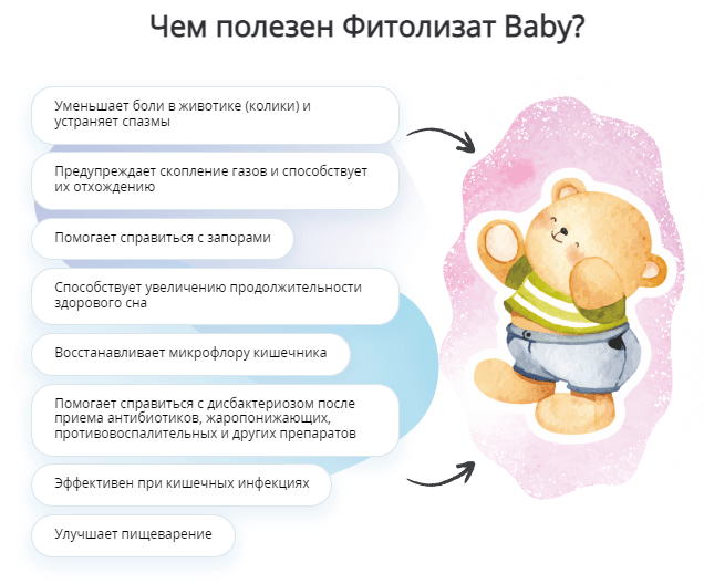 Препарат Фитолизат Baby необходим для профилактики нарушений пищеварения и для его восстановления: