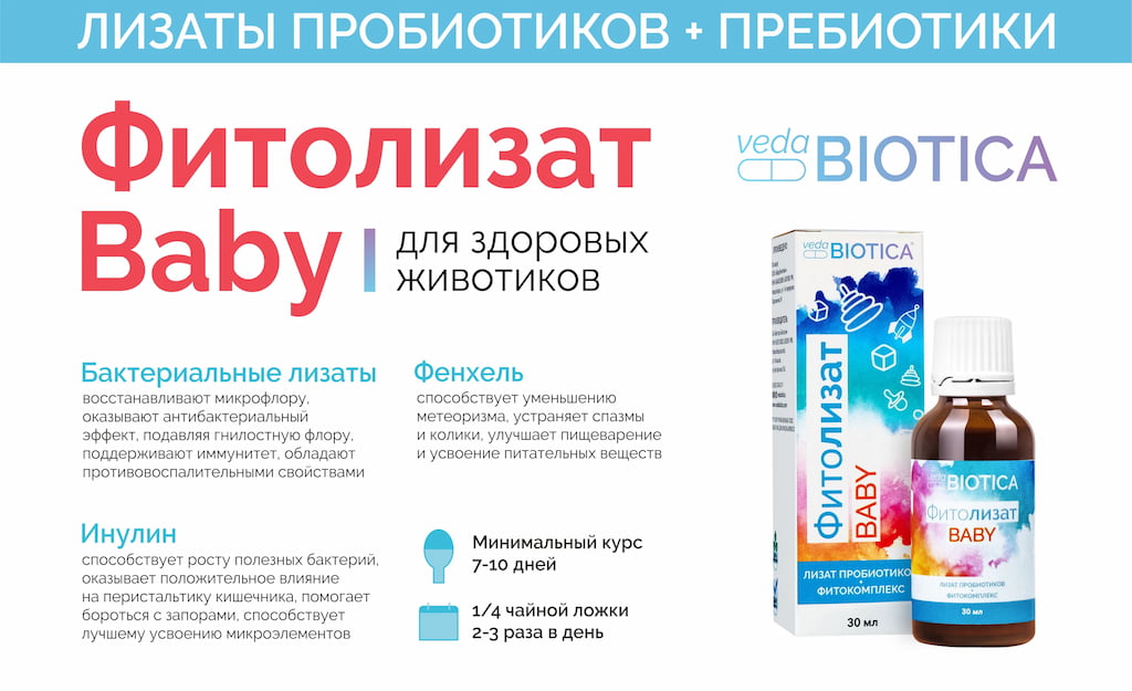Фитолизат Baby, как средство «скорой помощи» для детских животиков, необходим при спазмах и болях, при коликах в животе, которые являются одной из самых частых причин проблем со сном у малышей. В основе формирования младенческих колик лежат нарушения состава кишечной микробиоты. Младенческие колики, как считают ученые, это воспалительный процесс, при котором снижено содержание бактерий с противовоспалительным потенциалом.